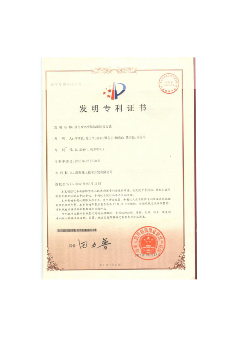 一种便于排液的碱沉上清液储桶实用新型***证书(签章)